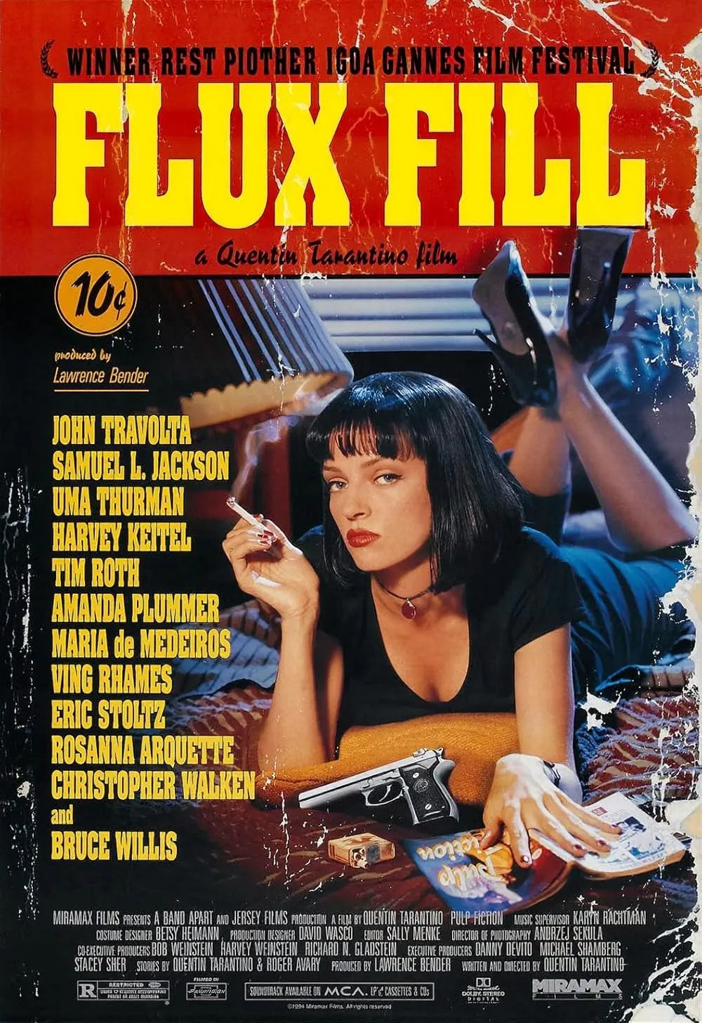 In this example we used FLUX Fill to quickly change the text “FLUX Dev” to “Fill Dev”. Our mask covered the word “FLUX”, and our prompt was: